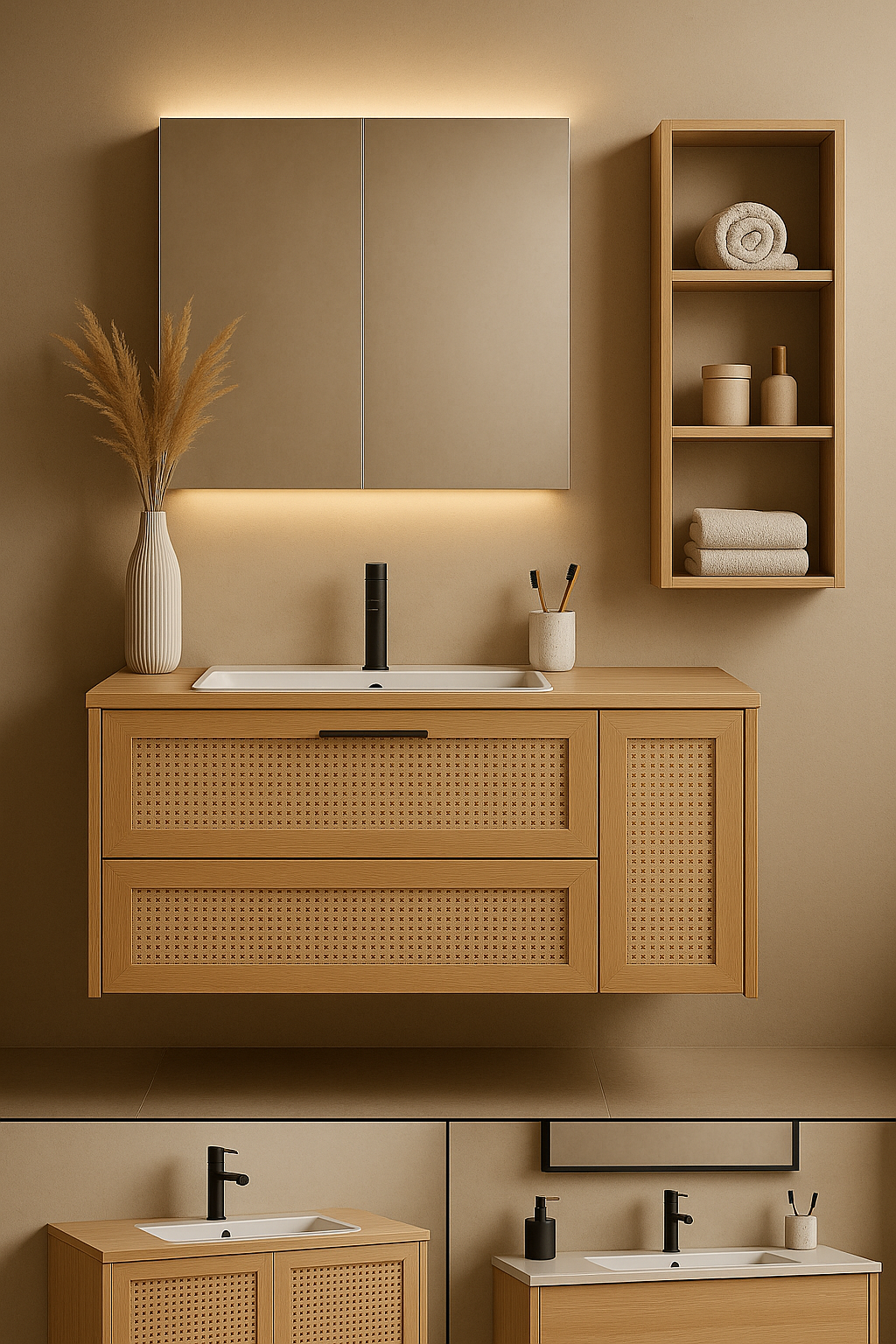 Perfect for small bathrooms or interiors in natural, Japandi, or Scandinavian styles.